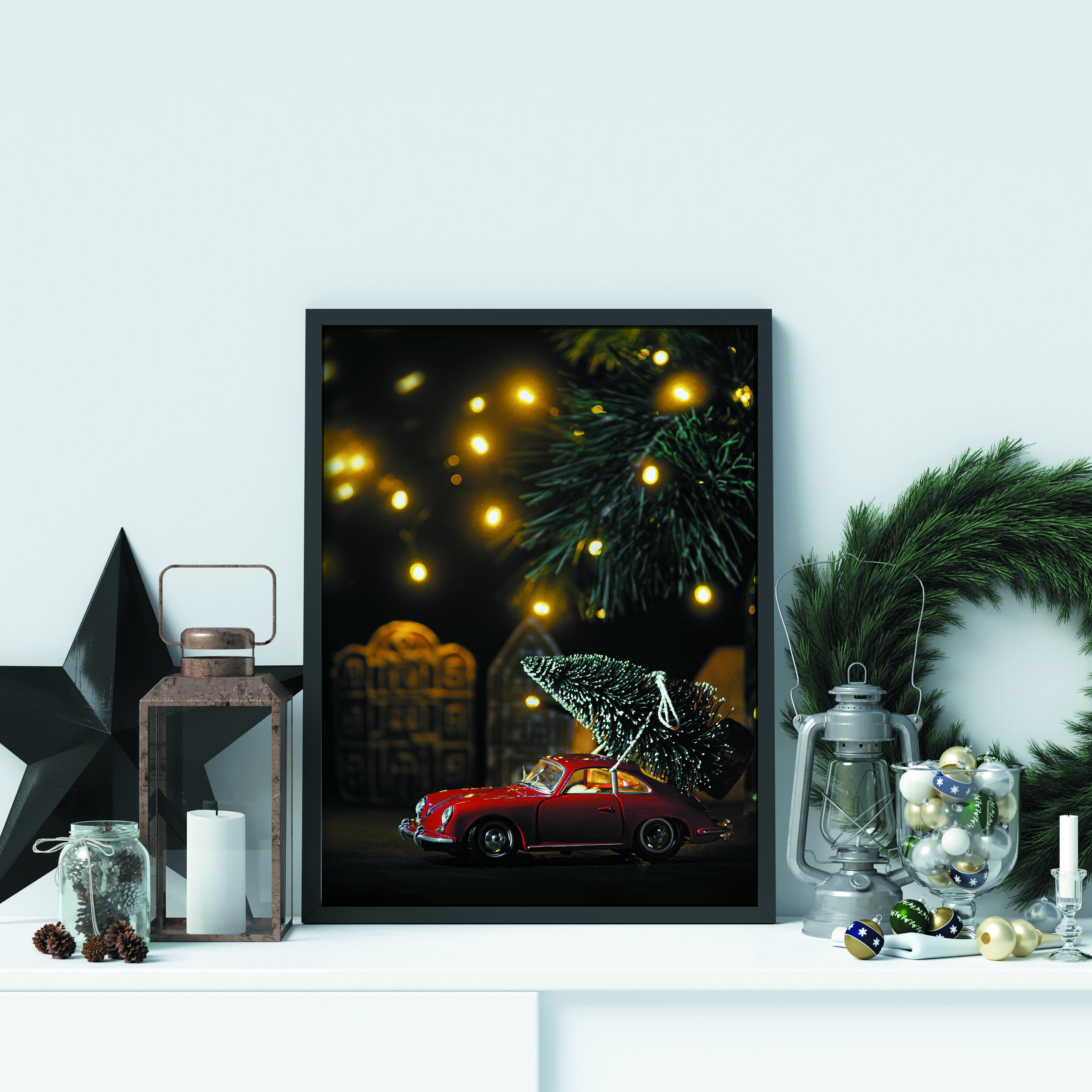 Plakat świąteczny Czerwone auto z choinką. Chcielibyśmy przedstawić Wam nasze przepiękne plakaty świąteczne w formacie A3 (29,7×42 cm), które nadadzą świąteczną atmosferę w Państwa domu. Idealnie nadadzą się także jako prezent. Nasze grafiki drukowane są na wysokiej jakości papierze zapewniającym żywe i intensywne barwy wydruku.