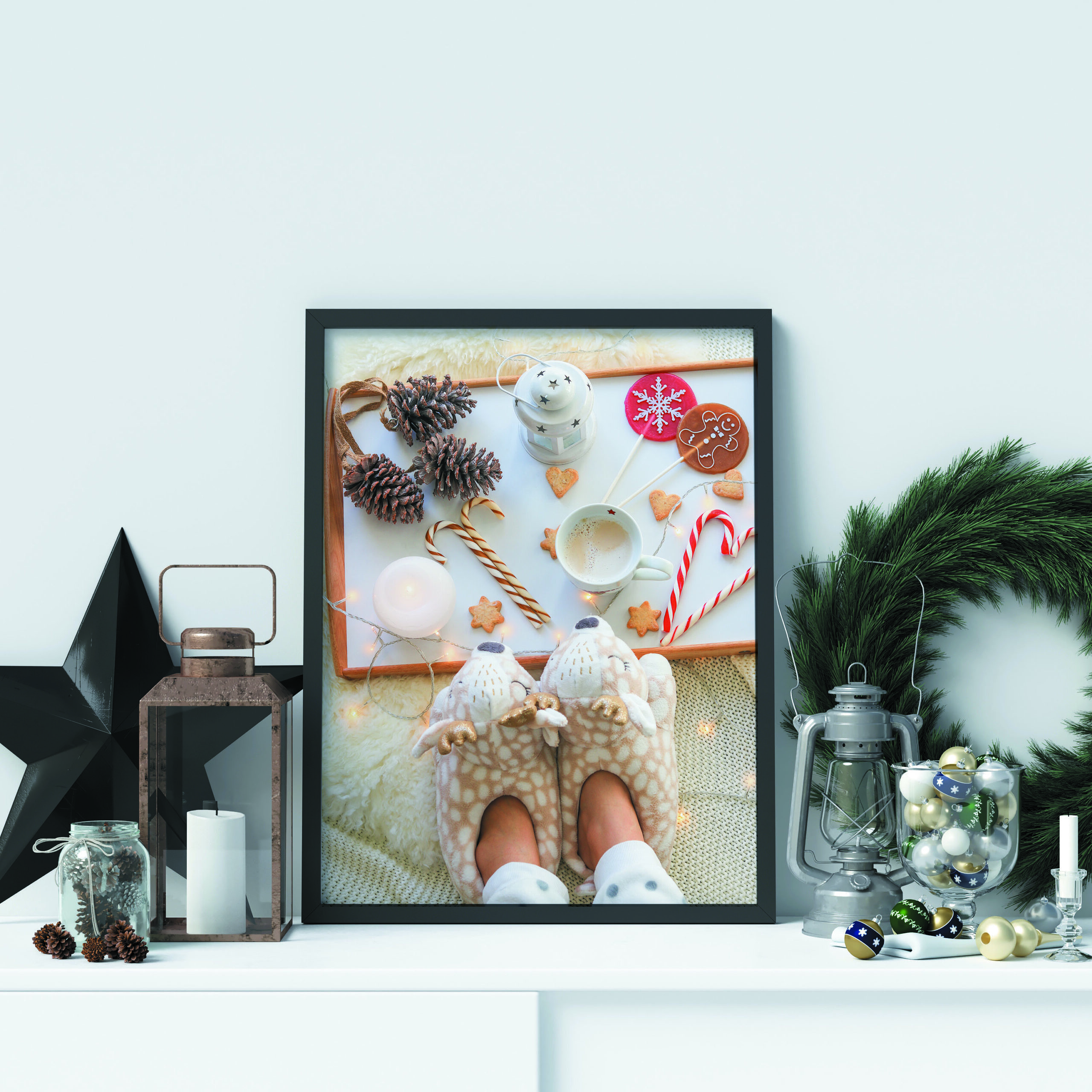 Plakat świąteczny Kapcie i słodycze. Chcielibyśmy przedstawić Wam nasze przepiękne plakaty świąteczne w formacie A3 (29,7×42 cm), które nadadzą świąteczną atmosferę w Państwa domu. Idealnie nadadzą się także jako prezent. Nasze grafiki drukowane są na wysokiej jakości papierze zapewniającym żywe i intensywne barwy wydruku.