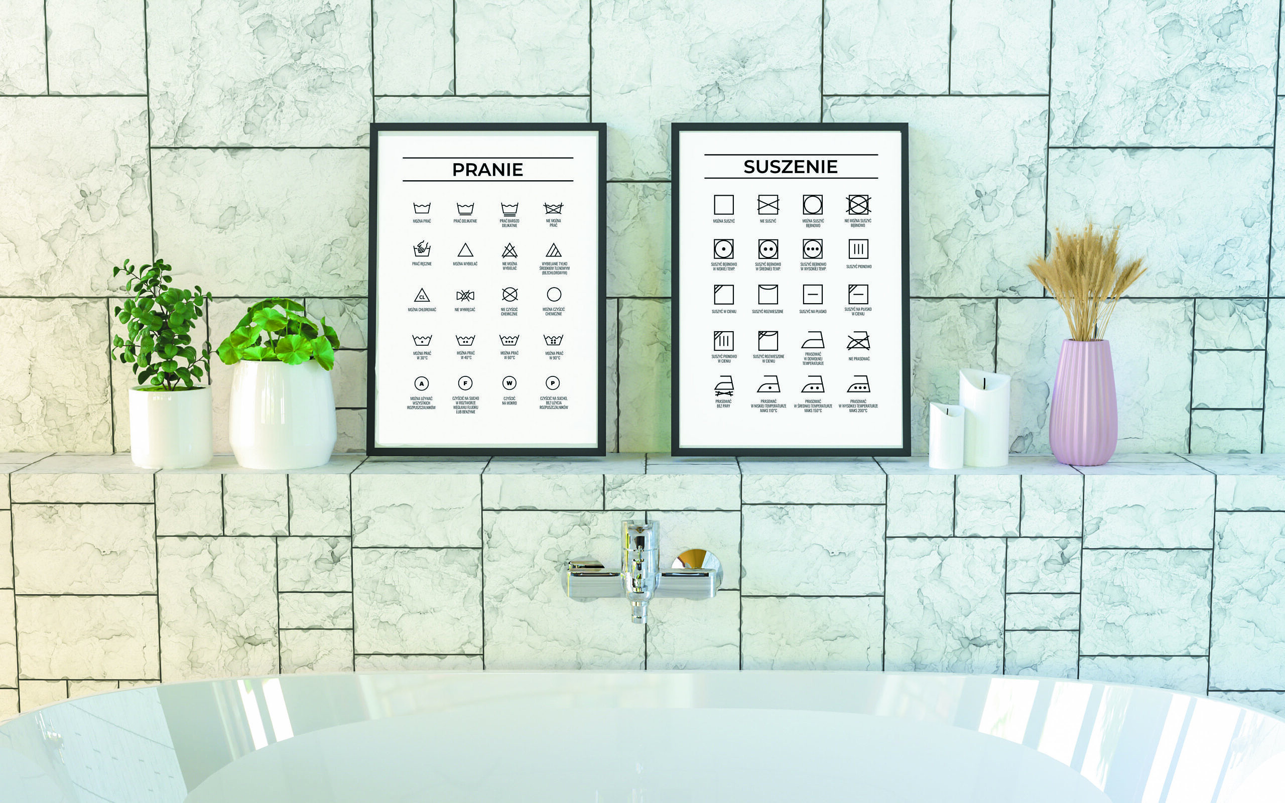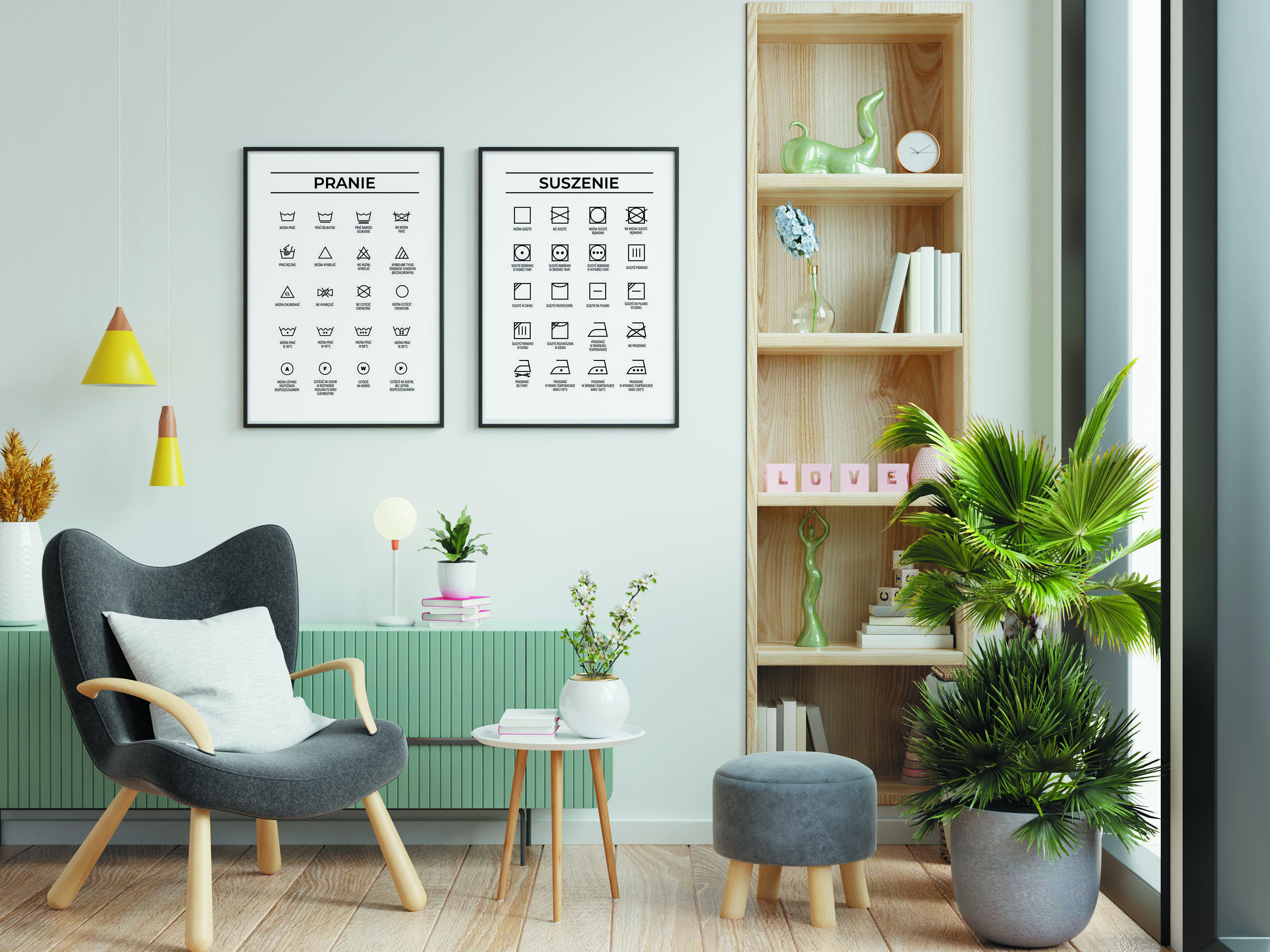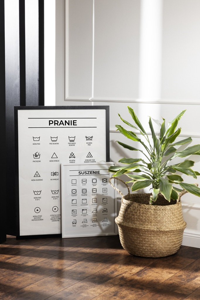 Plakaty do pralni i suszarni. Po raz kolejny skurczyły się Wam bluzki w suszarce lub tracicie czas na szukaniu w telefonie co oznacza przekreślony trójkąt? Jeśli tak, to mam dla Was produkt idealny. Plakaty z symbolami prania, wybielania, suszenia oraz prasowania. Wszystkie te znaczki znajdziecie na dwóch czytelnych plakatach. Oczywiście jest możliwość zamówienia tylko tego plakatu, który was interesuje. Obrazki nie dość, że są praktyczne i będziemy z nich korzystać na co dzień to jeszcze są elegancką dekoracją pralni.