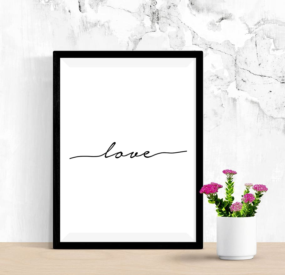 Plakat „love” w ramie to gotowy pomysł na prezent, który zawsze trafia w gust: