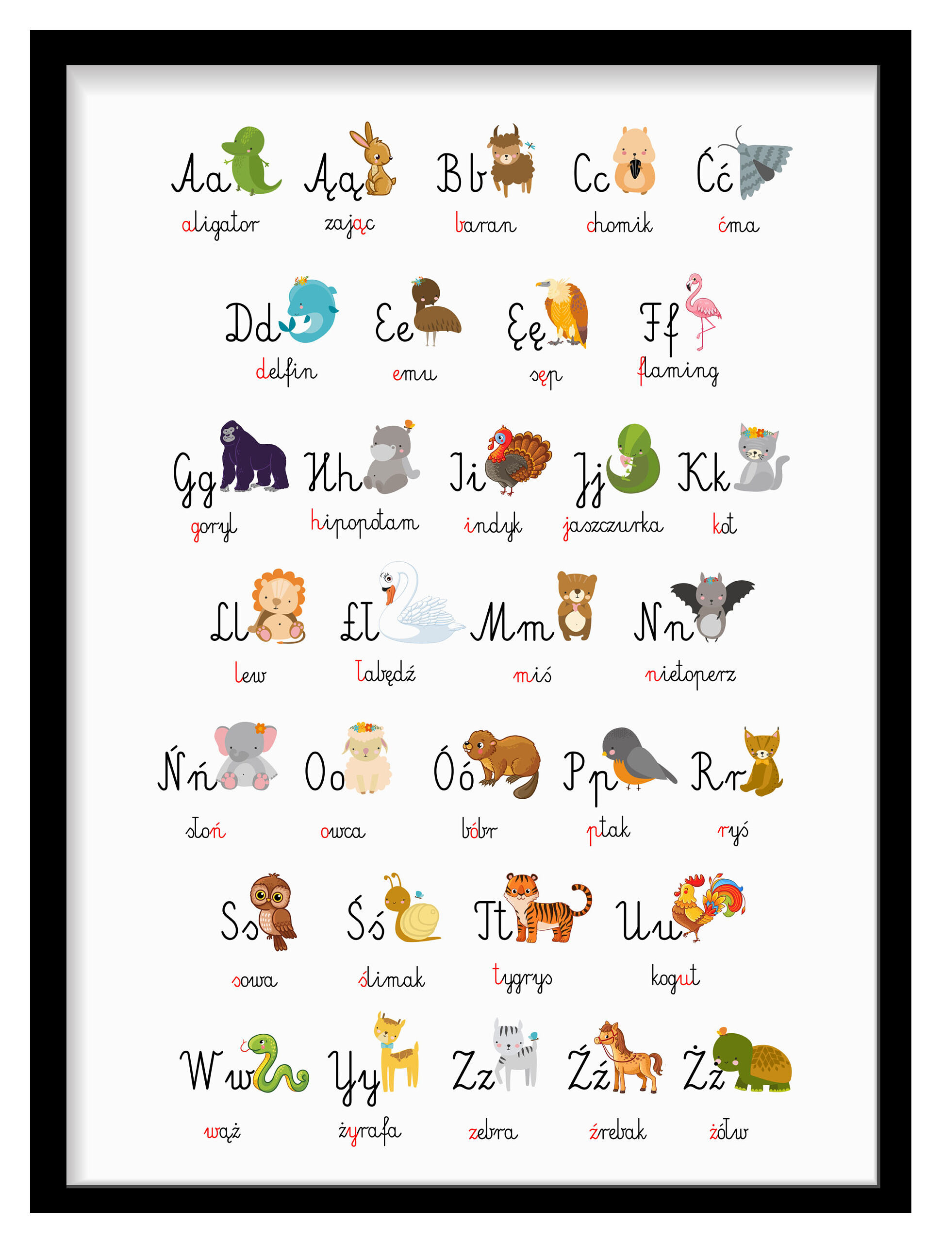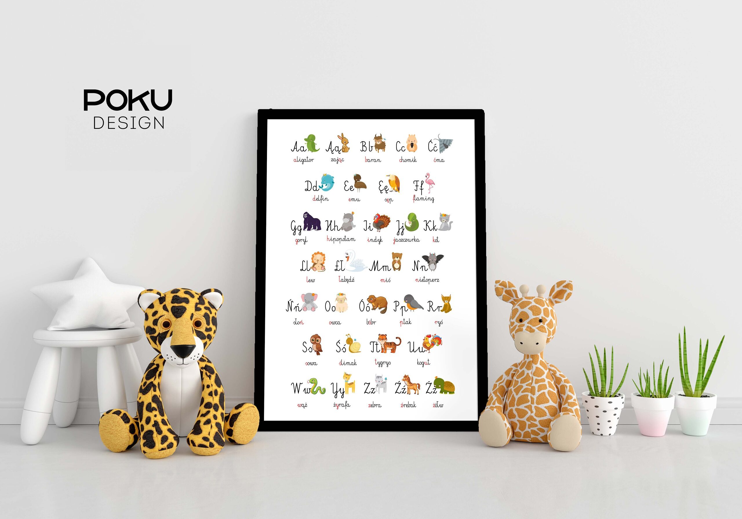 Czy wiesz, że dzieci najszybciej uczą się poprzez skojarzenia? Nasz plakat alfabet ze zwierzętami został zaprojektowany tak, by wspierać naturalną ciekawość malucha. Każdej literze towarzyszy pięknie namalowane zwierzątko, którego nazwa zaczyna się na daną literkę.