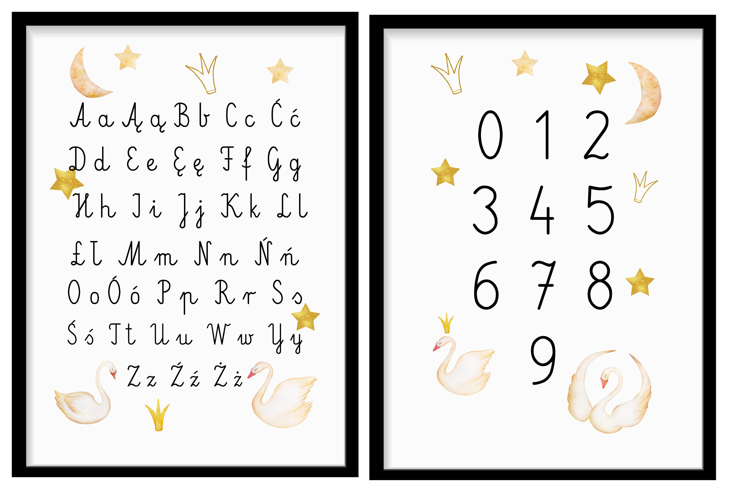 Plakaty edukacyjne Łabędzie alfabet i cyfry