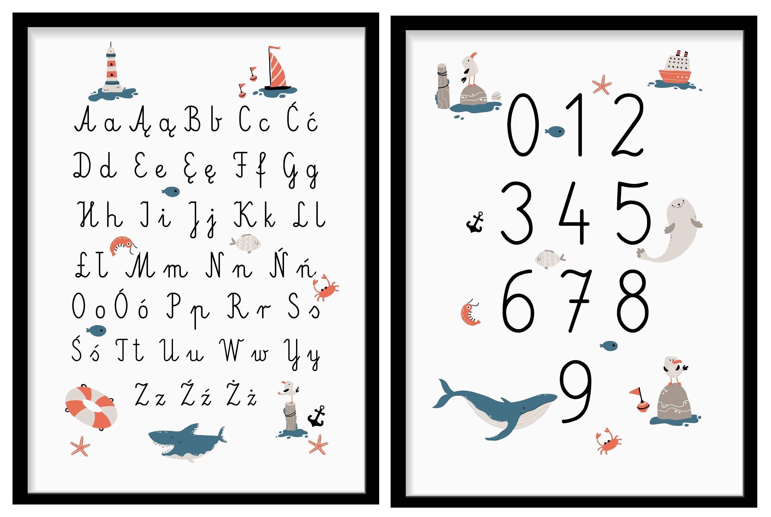 Plakaty edukacyjne Morze składają się z alfabetu pisanego oraz cyfr. Zestaw ten pomoże każdemu dziecku szybko przyswoić litery i cyfry. Są po prostu pomocą dydaktyczną. Stanowią również doskonałą ozdobę w pokoju dziecka. To nie tylko gustowny dodatek, ale również dekoracja pobudzająca dziecięcą wyobraźnię.
