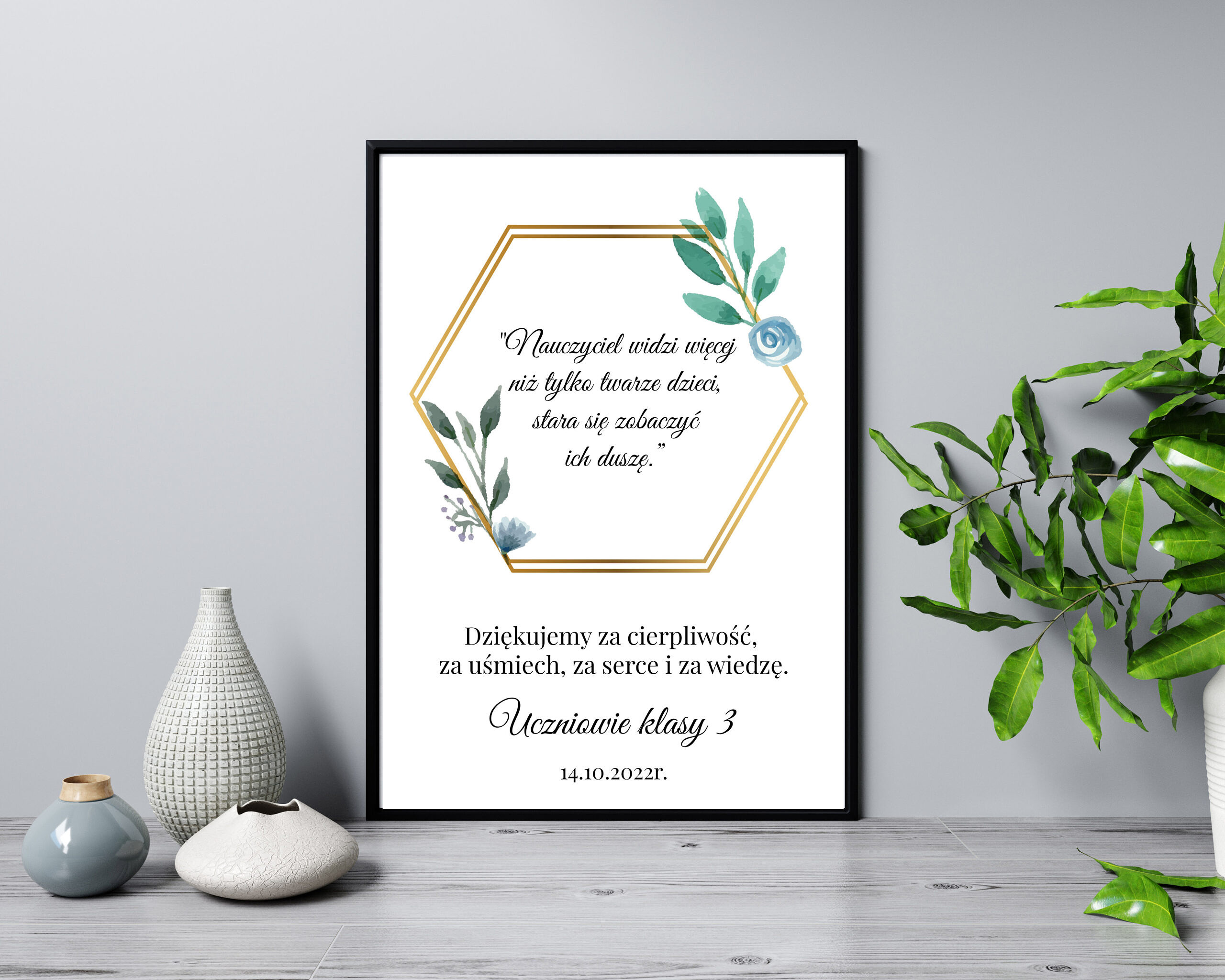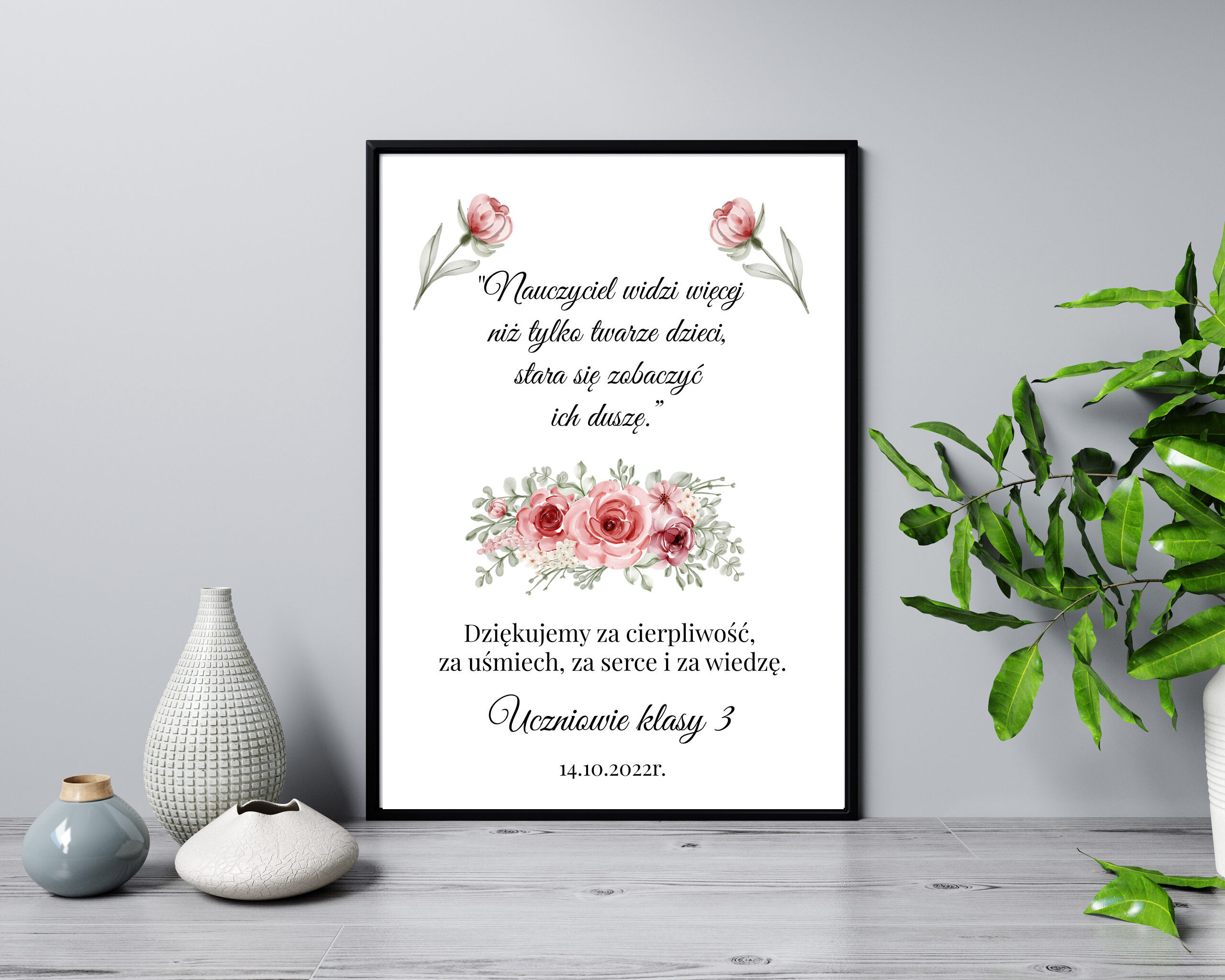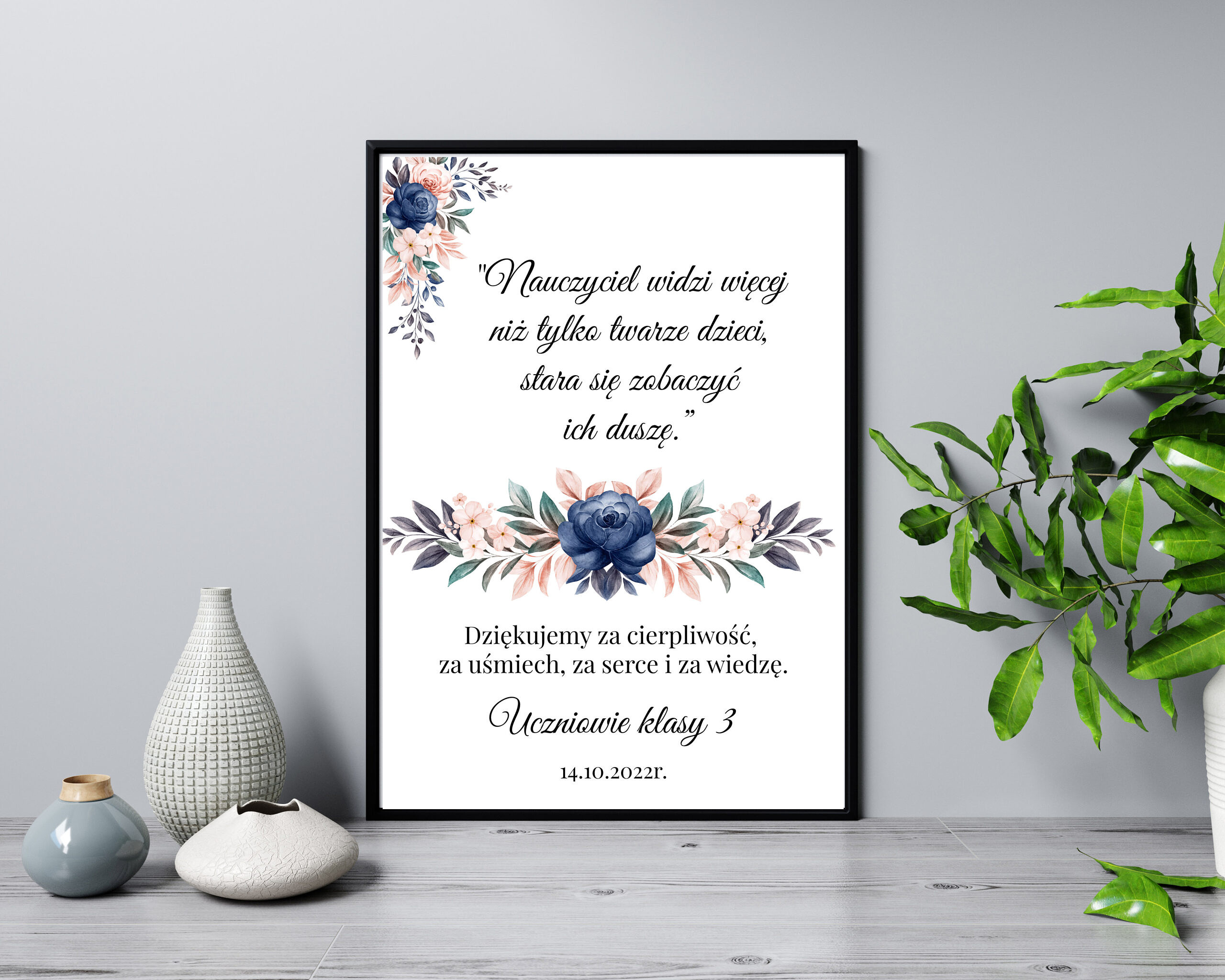 Chcielibyśmy przedstawić Wam nasz przepiękny prezent dla nauczycieli w formacie A4 (21×29,7 cm) w ramce czarnej lub białej. Jest to idealny prezent dla nauczyciela w dniu jego święta i nie tylko. Nasze grafiki drukowane są na wysokiej jakości papierze satynowym zapewniającym żywe i intensywne barwy wydruku.