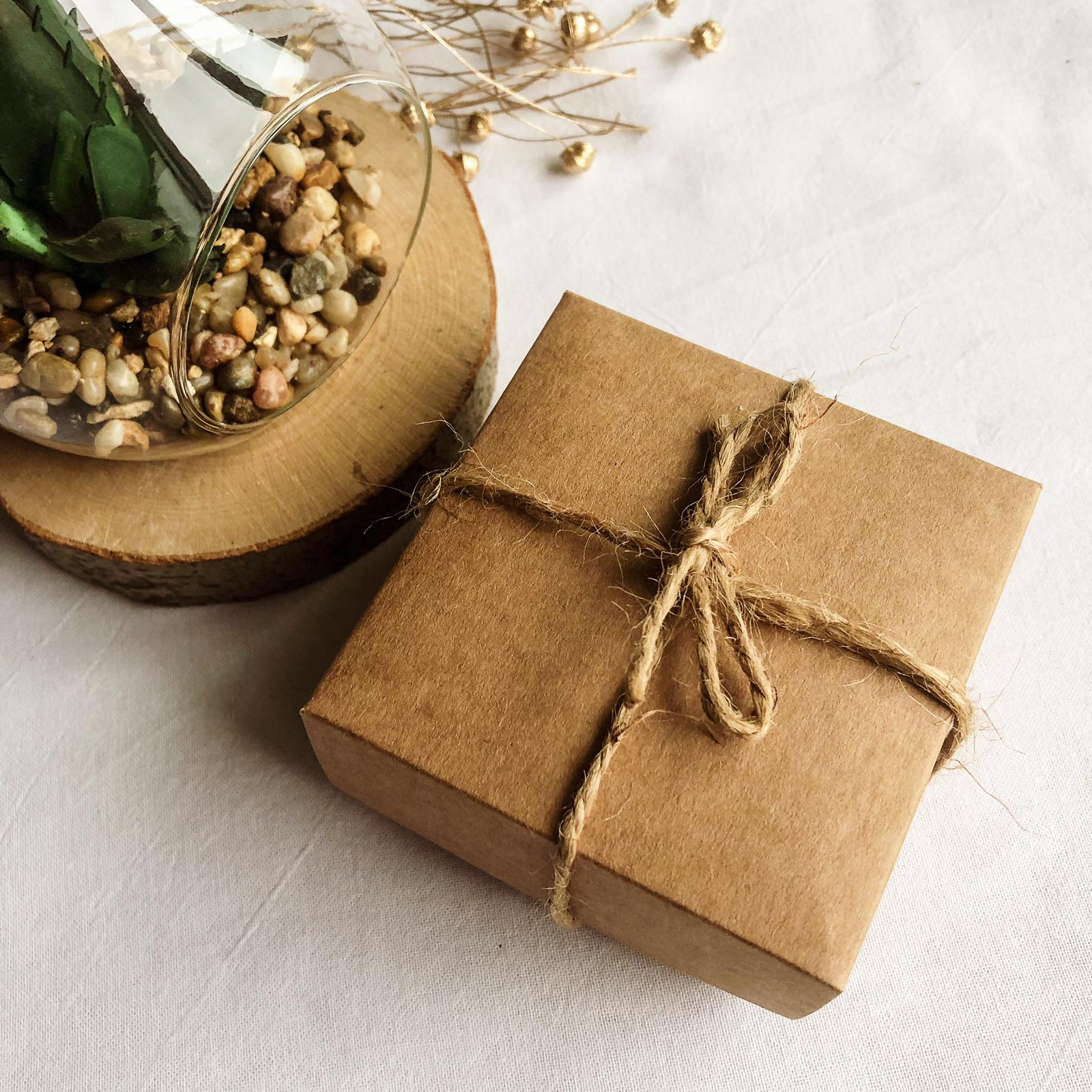 Eleganckie opakowanie: Wymiary pudełka to ok 8 x 8 x 3 cm. W środku znajduje się ozdobna wełna drzewna i drewniane serduszko.