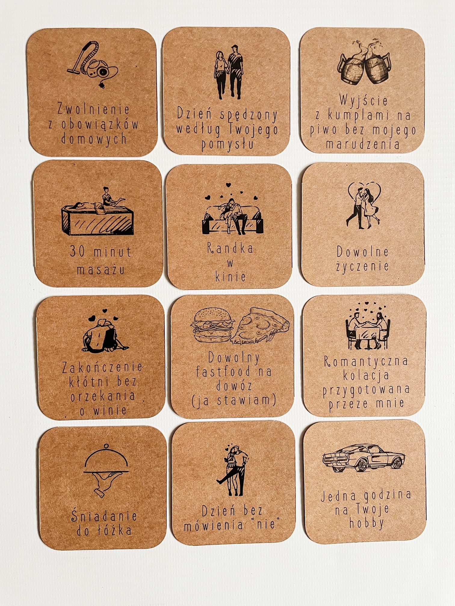 Nasz zestaw składa się z 12 kart z zadaniami, a nie 20 czy 30. Zrobiliśmy to celowo, z myślą o Tobie – w końcu to Ty będziesz musiała te życzenia spełnić! 😉